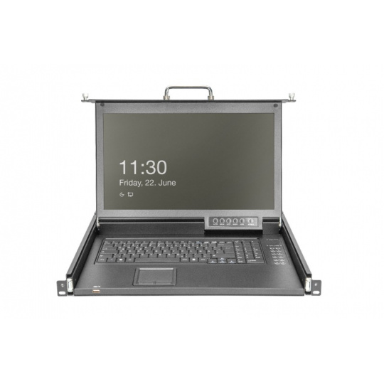 DIGITUS 17" Modulární HD LCD TFT KVM konzole, 1-port VGA, německá klávesnice, barva černá (RAL 9005)