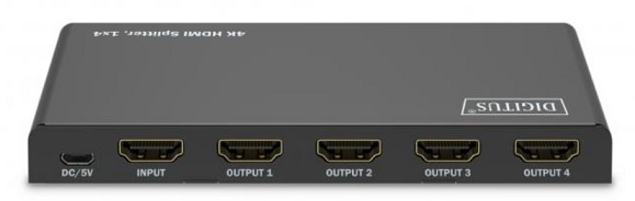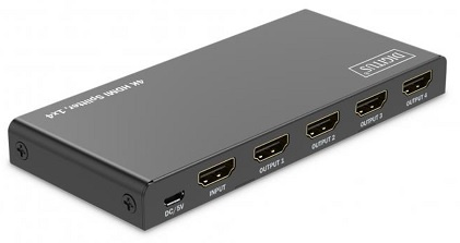 DIGITUS® HDMI Splitter rozděluje/zrcadlí audio a video signály vašeho HDMI zařízení na 4 televizorech, monitorech nebo projektorech s rozlišením max. 4K / 60 Hz.