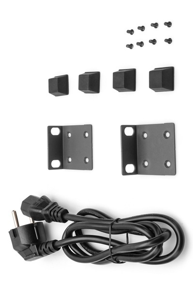 24portový gigabitový PoE switch, 19palcový, nemanizovaný, 2 SFP uplink Napájecí kabel Stručná úvodní příručka