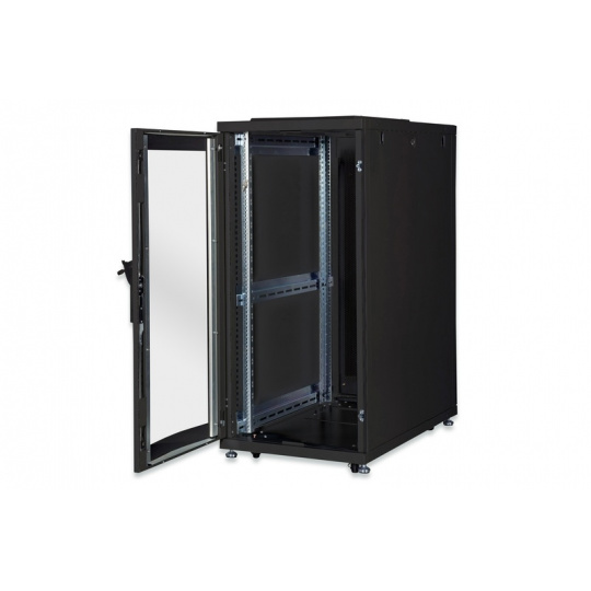 DIGITUS 26U serverový stojan, Unique Series ocelové přední dveře 1340x600x1000 mm s plexi sklem, černé (RAL 9005)