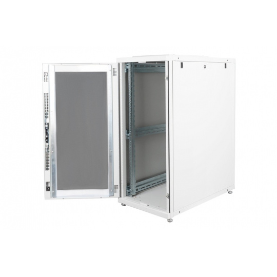 26U serverový stojan, Unique Series, ocelové přední dveře 1340x600x1000 mm s plexi sklem, šedé (RAL 7035)
