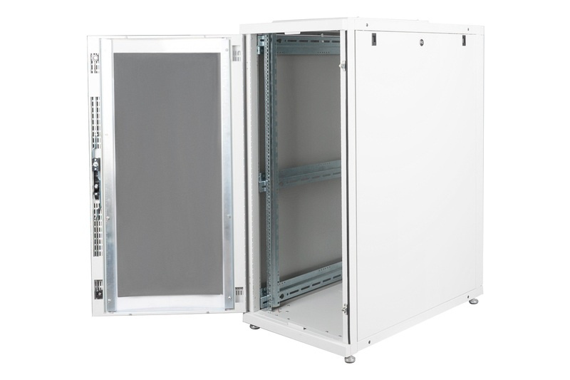 26U serverový stojan, Unique Series, ocelové přední dveře 1340x600x1000 mm s plexi sklem, šedé (RAL 7035)