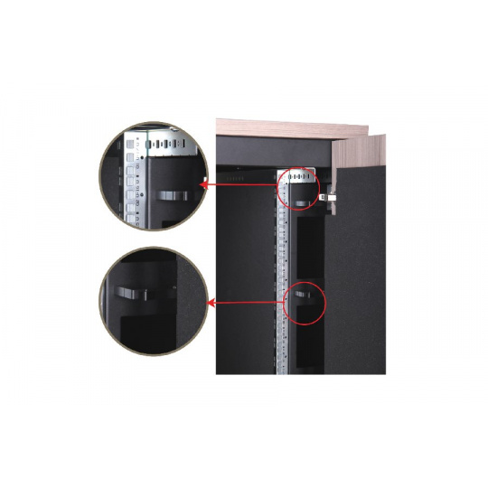 Integrované kroužky pro správu kabelů (88x60 mm) vpředu vlevo a vpravo