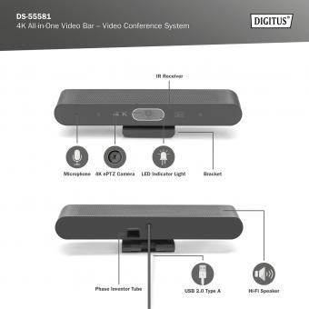 DIGITUS 4K All-in-One Video Bar ePTZ, AI, 2x mikrofon/1x reproduktor