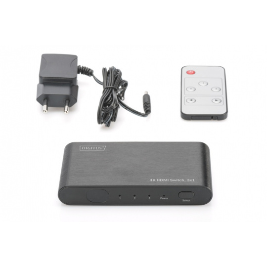 DIGITUS 4K Highspeed HDMI 2.0 Přepínač, 3x1 UHD 4K*2K@60 Hz, Full 3D, hliníkové pouzdro, černá