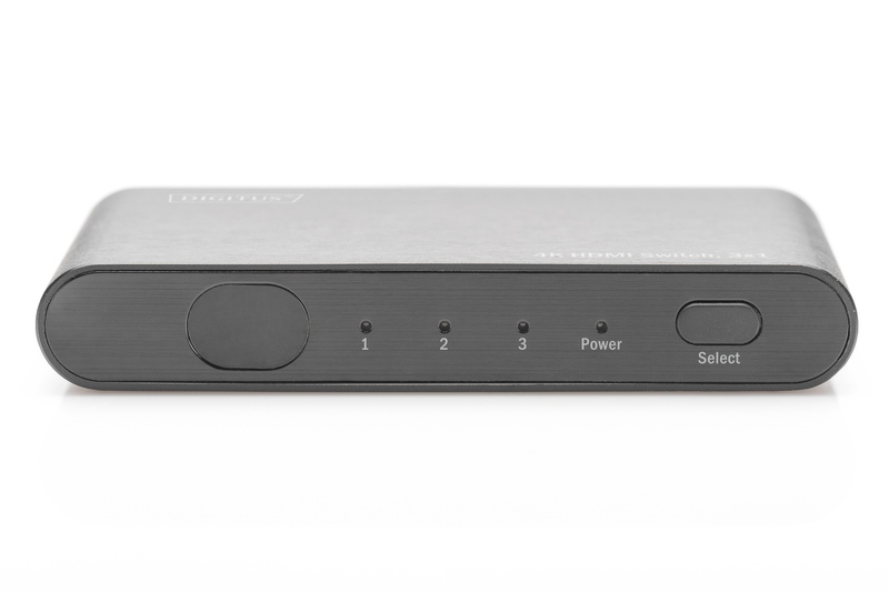 DIGITUS 4K Highspeed HDMI 2.0 Přepínač, 3x1 UHD 4K*2K@60 Hz, Full 3D, hliníkové pouzdro, černá