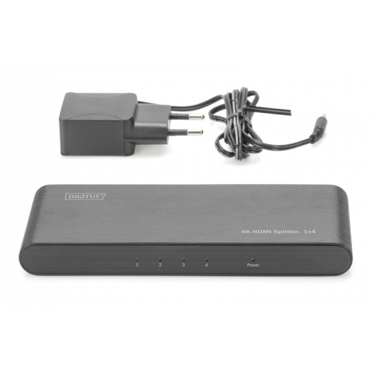 DIGITUS 4K vysokorychlostní HDMI 2.0 Rozbočovač, 1x4 UHD 4K*2K@60 Hz, Full 3D, hliníkový kryt, černý