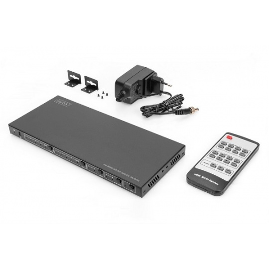 Digitus® HDMI 4x Matrix Switch, 4K/60Hz distribuuje mediální obsah až ze 4 zdrojů HDMI až na 2 záznamová zařízení (např. rekordér s pevným diskem) nebo přehrávací zařízení (TV, monitor, projektor atd.), současně a nezávisle. Pohodlné přepínání mezi zdroji HDMI a výstupními zařízeními pomocí dálkového ovládání, nezávisle a bez problémů s přepojováním kabelů. Díky podpoře 4K UHD si můžete vychutnat svůj mediální obsah v ultra vysokém rozlišení. Dokonalé a kompletní řešení distributora HDMI, ať už pro profesionální nebo komerční použití.