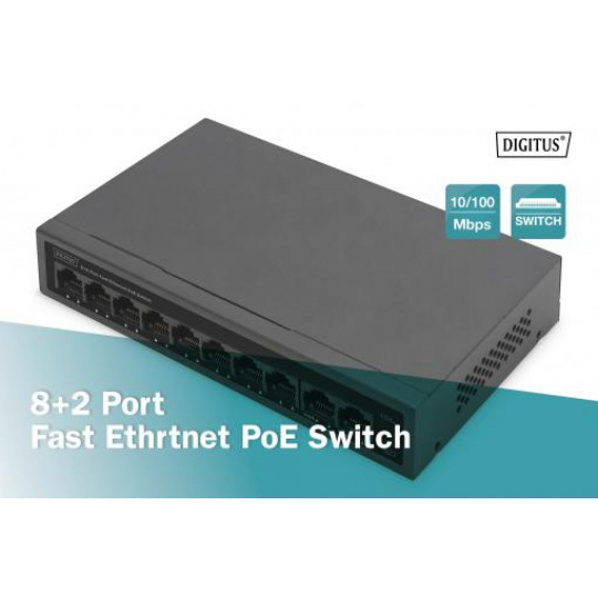 DIGITUS 8+2 Port FE PoE Switch 8 Port PoE 802.3at, 10/100 Mbps