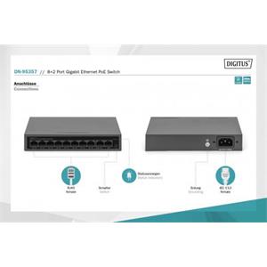 DIGITUS 8+2 Port GE PoE Switch 8 Port PoE 802.3at, 10/100/1000 Mbps + 2 Port GE