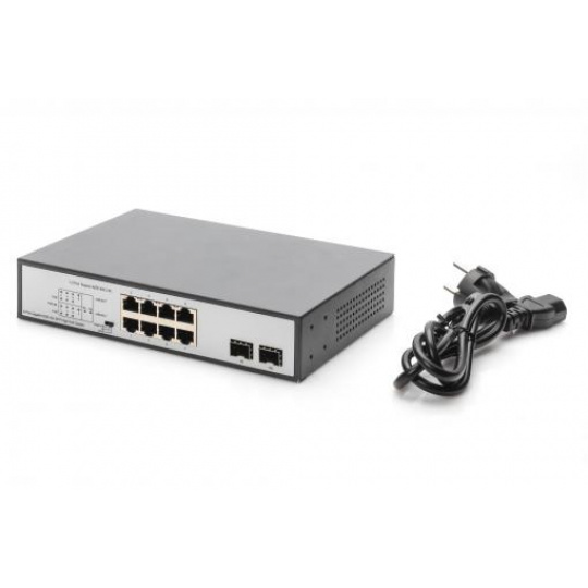 DIGITUS 8 Port Gigabit Switch 8xRJ45 (6xPoE)+ 2G SFP 180W Support 802.3 af/at/bt standard