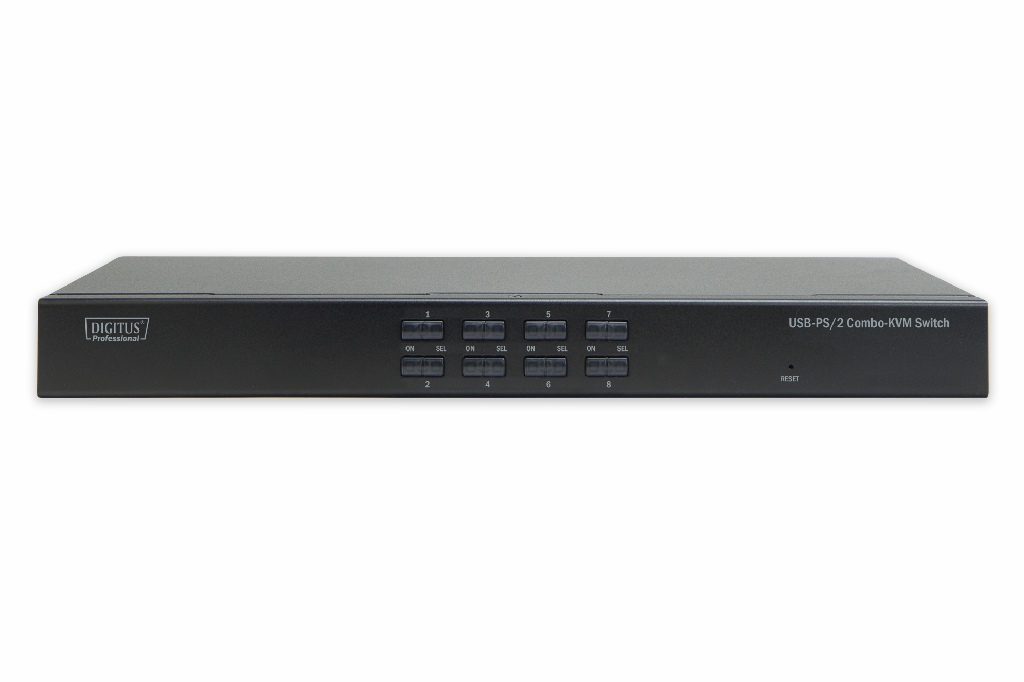 DIGITUS 8 portový přepínač KVM Combo, 1 uživatel, 8 počítačů, slot pro funkční modul IP