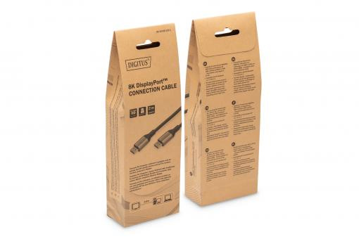 DIGITUS 8K @ 60Hz; DP to DP Connectioncable; DP 1.4 Alu Housing; Black; 2m