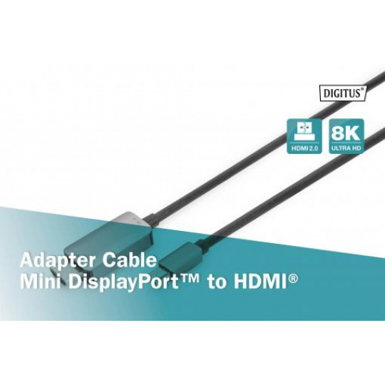 Digitus 8K@60Hz. M/M; mini DP na HDMI; kabeový adaptér Alu Pouzdro; Černý; 1m