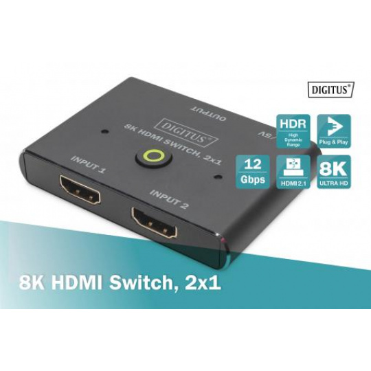 DIGITUS 8K HDMI přepínač, 2x1 černý