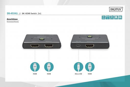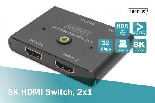 DIGITUS 8K HDMI přepínač, 2x1 černý