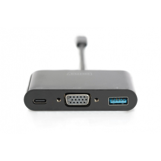 DIGITUS Adaptér USB typu C Multiport na VGA 1x VGA, 1x USB-C (PD), 1x USB 3.0, černý