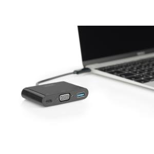 DIGITUS Adaptér USB typu C Multiport na VGA 1x VGA, 1x USB-C (PD), 1x USB 3.0, černý