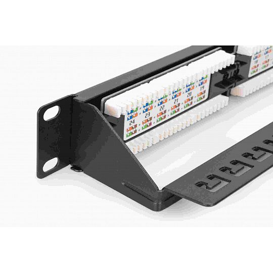 Nechráněný panel CAT 6 od DIGITUS® je dostupný jako 16- nebo 24portový (1 racková jednotka) nebo 48portový (2 rackové jednotky). Je vyráběn v souladu s požadavky třídy Link Performance Class E pro až 250 MHz, ISO/IEC 11801 a EN 50173 a je certifikován UL. Pouzdro je vyrobeno z 1,5mm pozinkované za studena válcované oceli, a proto je ideální pro montáž do 19" racku.