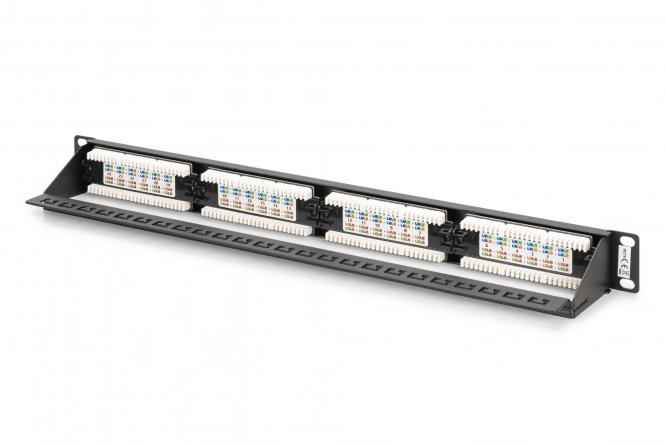 Nechráněný panel CAT 6 od DIGITUS® je dostupný jako 16- nebo 24portový (1 racková jednotka) nebo 48portový (2 rackové jednotky). Je vyráběn v souladu s požadavky třídy Link Performance Class E pro až 250 MHz, ISO/IEC 11801 a EN 50173 a je certifikován UL. Pouzdro je vyrobeno z 1,5mm pozinkované za studena válcované oceli, a proto je ideální pro montáž do 19" racku.