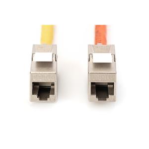 Stínované CAT 6 moduly DN-93615 od společnosti DIGITUS® zaujmou standardy orientovanými na budoucnost a špičkovou kvalitou vaší sítě. Kompaktní konstrukce umožňuje sériovou instalaci na panel 1U 483 mm (19 ”). Instalace bez použití nástrojů používá kolejnice LSA barevně označené podle EIA / TIA 568 A&B. Jeho kompaktní design také znamená, že modul se hodí do designově kompatibilních modulárních rozvodných skříní.