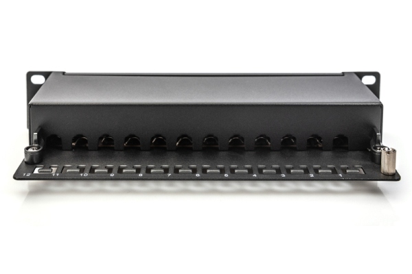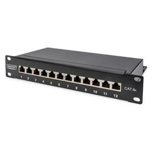 DIGITUS CAT 6A Patch Panel, stíněný, 12-portové pole se štítkem, 1U, 10 "montáž do stojanu, černá RAL 9005