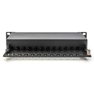 CAT 6A Patch Panel, stíněný, 12-portové pole se štítkem, 1U, 10 "montáž do stojanu, černá RAL 9005