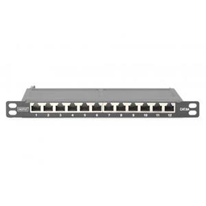 Patch panel CAT 6A, stíněný, 12portový 1 / 2U, 10 "montáž do stojanu, černá RAL 9005