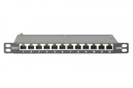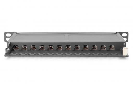 DIGITUS CAT 6A, propojovací panel třídy EA, stíněný, 12 portů, 0,5U, 10 ", černý