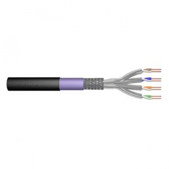 CAT 7 S-FTP venkovní instalační kabel, 1200 MHz PE, vnitřní Eca (LSZH-1), AWG 23/1, 1000 m buben, simplex, barva černá a fialová