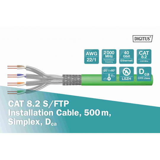 DIGITUS CAT 8.2 S/FTP instalační kabel, 500 m, Simplex, Dca-s2,d1,a1