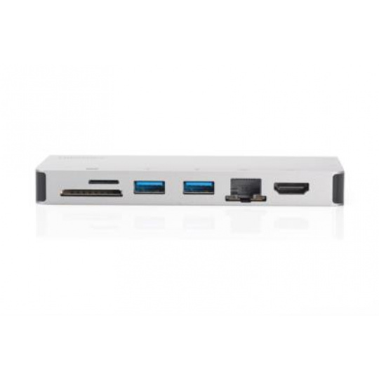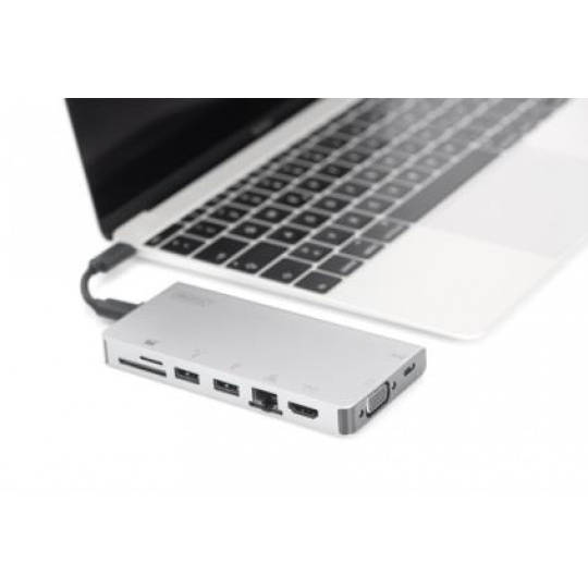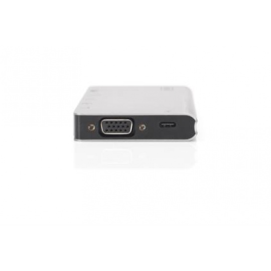Digitus Cestovní dokovací stanice USB-C Multiport, 8 portů 2x video, 2x USB-C, 2x USB3.0, čtečka karet RJ45,2x