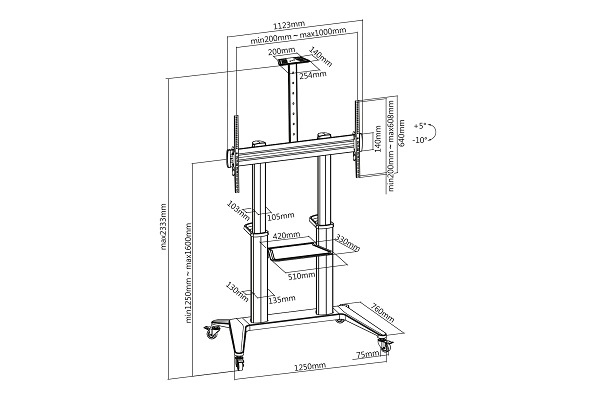 DIGITUS Collaboration Trolley / TV Presentation Cart , 70-120" 140 kg max., černý VESA 200, 400, 600, 800, 1000