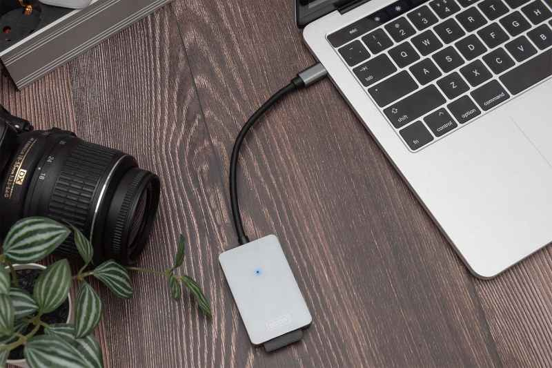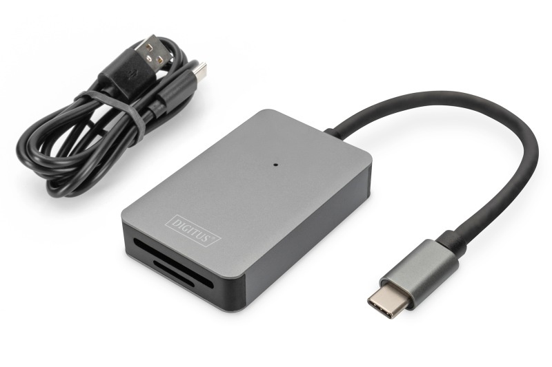 Čtečka karet SD DIGITUS USB-C umožňuje superrychlý přenos dat do počítače PC nebo Mac. Máte možnost používat paměťové karty UHS-II SD 4.0 a přenášet data rychlostí 300 Mb/s.