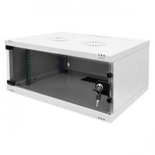 DIGITUS DN-38010 Nástěnná skříň 4U, SOHO, nemontovaná 241x540x400 mm, celoskleněné přední dveře, šedá (RAL 7035)