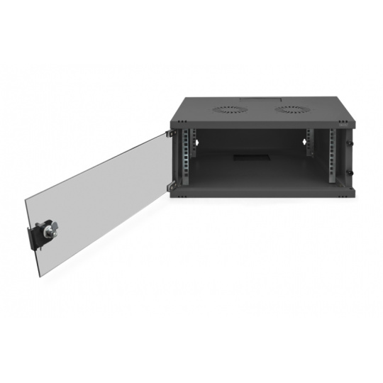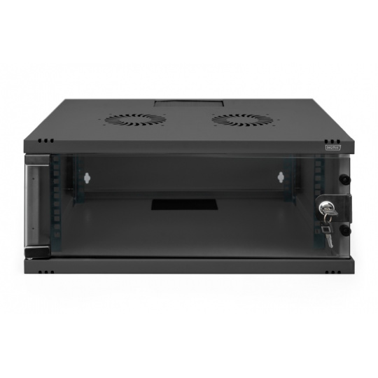 DIGITUS DN-38011 Nástěnná skříň 4U, SOHO, nemontovaná 241x540x400 mm, celoskleněné přední dveře, černá (RAL 9005)