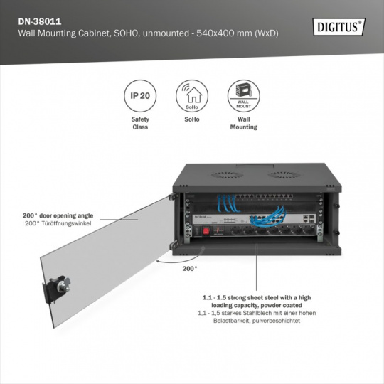 Nástěnné skříně DIGITUS® jsou vyrobeny pro vysoce náročná řešení IT infrastruktury – navrženy a vyvinuty podle nejvyšších standardů v Německu.
