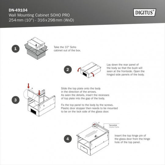 Nástěnné pouzdro DIGITUS® řady SOHO PRO se vyznačuje efektivní dodávkou v optimalizovaném plochém balení a zvláště uživatelsky přívětivou instalací.