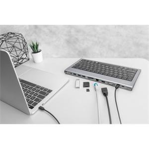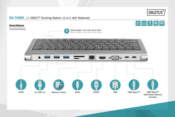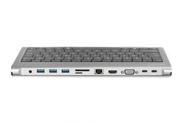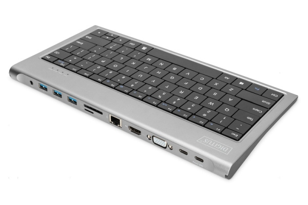 Digitus Dokovací stanice USB-C (10 portů) + klávesnice (GER), HDMI, VGA, 3x USB 3.0, 2x čtečka karet, 2x USB-C, RJ45, zvuk