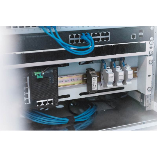 Držák na DIN lištu o šířce 483 mm (19") umožňuje instalaci vhodného zařízení na již namontovanou DIN lištu o šířce 430 mm.
