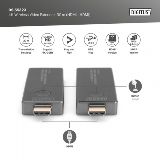 DIGITUS DS-55323 4K Wireless Video Extender Set, 30 m (HDMI - HDMI)