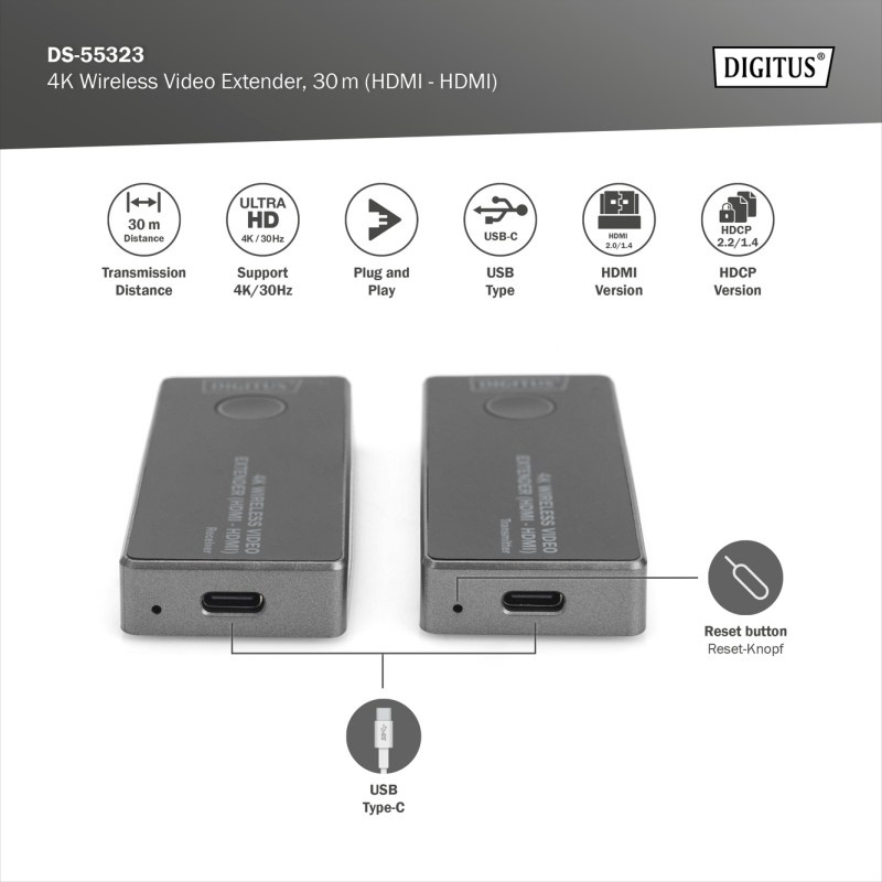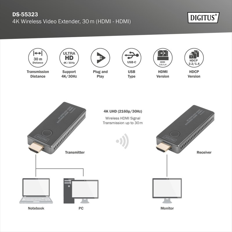 DIGITUS DS-55323 4K Wireless Video Extender Set, 30 m (HDMI - HDMI)