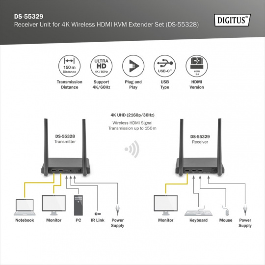 DIGITUS DS-55329 Přídavná jednotka 4K Wireless HDMI Receiver (RX) pro DS-55328