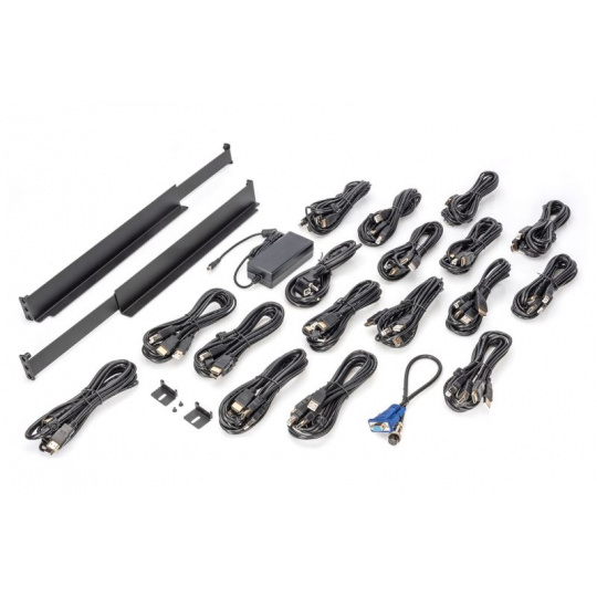 Modularizovaná HD LCD TFT konzole, 8 portů VGA s 8 porty VGA KVM, americká klávesnice, RAL 9005 černá