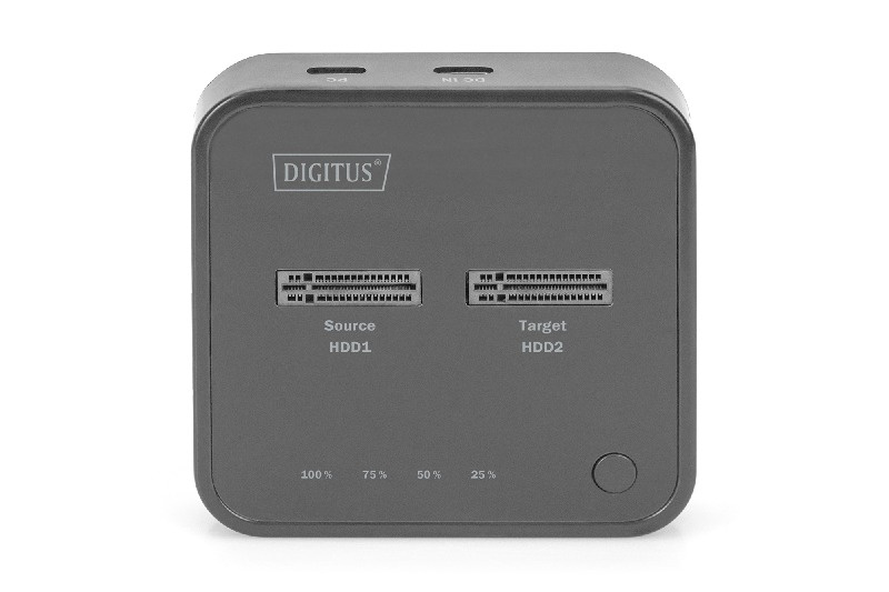 Dokovací stanice Dual NVMe od DIGITUS® může pojmout M.2 SSD až 4 TB na krabici. Spravujte celkem 2 SSD v různých formátech s celkovým úložištěm až 8 TB. Integrovaná funkce klonování offline dokonce umožňuje duplikovat paměťová média stisknutím tlačítka bez připojeného koncového zařízení. Průběh kopírování je zobrazen LED indikátory na zařízení. Podporuje M-Key a B+M Key NVMe SSD v běžných formátech 2242, 2260, 2280 & 22110. Snadno rozšiřte úložnou kapacitu mnoha zařízení USB-C™, jako jsou počítače, notebooky, televizory, herní konzole nebo směrovače.