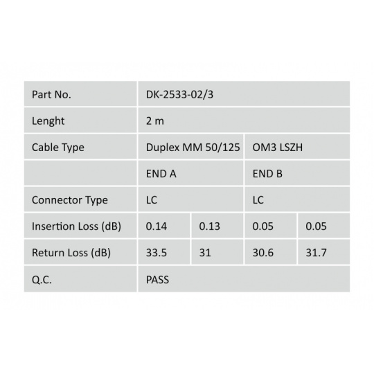DIGITUS Fiber Optic Patch Cord, LC to LC, Multimode, OM3, 50/125 µ, Duplex Length 2m