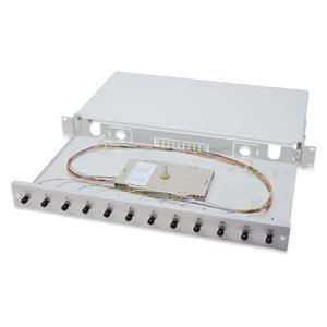 Fiber Optic Sliding Splice Box, 1U, Equipped 12x ST, incl. M 25 Screw, Splice Cassette Color Pigtails OM2, Adapter