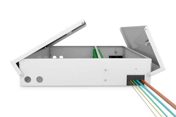 Unibox z optických vláken je robustní a kompaktní spojovací box pro montáž na zeď. Se samostatně dostupnými spojovacími držáky, které lze namontovat během několika sekund, lze skříň vybavit spojkami, vláknovými copánky a kabely v závislosti na konkrétních potřebách. Oblasti použití zahrnují vnitřní telekomunikační a datové komunikační aplikace.