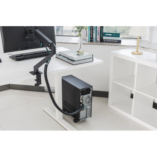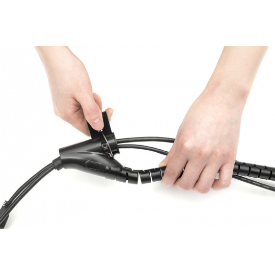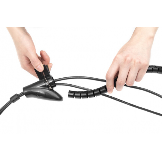 Flexibilní správa kabelů zajišťuje, že vaše připojovací kabely jsou úhledně svázány, a chrání je před opotřebením. Délku lze individuálně zkrátit a při použití více kabelů se napíná. Pomocí pohodlné tažné pomůcky můžete své kabely do spirálové trubice vtažit bez prodlení. Čistá správa kabelů a super jednoduchá manipulace jsou důvodem, proč je to zvláštní. Díky elegantnímu řešení od společnosti DIGITUS® již nepatří k nepořádkům nebo spleti kabelů.