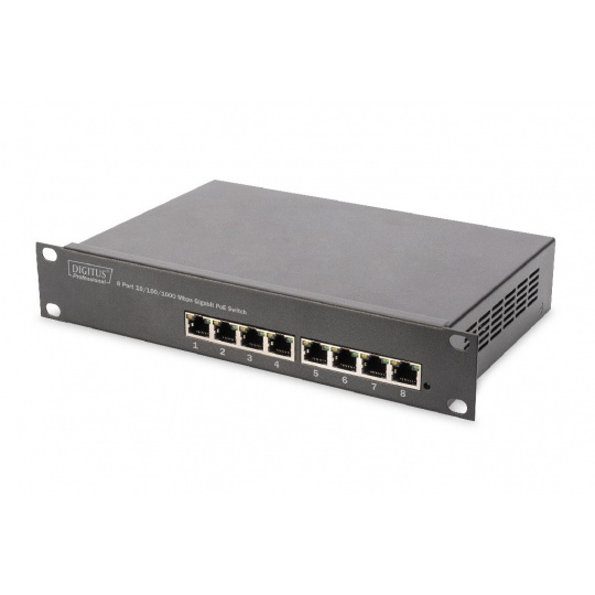 DIGITUS Gigabit Ethernet PoE přepínač 8 portů PoE, 10 palců, Napájení PoE 96 W